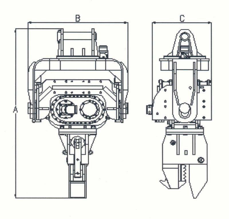 液压振动打桩机主要安装在挖掘机上使用。高频液压振动打桩机内置两只偏心轴,采液压马达驱动,产生高速旋转及垂直激振力,透过减振橡胶块后,维持一定的振幅,能够应付多种类型的土质与打桩要求。激振力是与偏心轴尺寸和振动次数平方成正比,制作的偏心轴均经过详细计算与测试,兼顾的激振力和材料特性的匹配,不但能满足工作需要,同时保证了机械可靠度